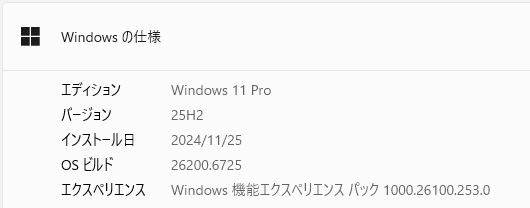 24H2から25H2は、ほぼ変化は無く、24H2の最新版がインストールされていれば、