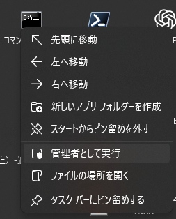 次に、cmd(コマンドプロンプト)を管理者モードで起動します。