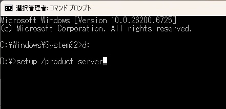 インストール画面に、「Windows Server セットアップ」と表示されますが、