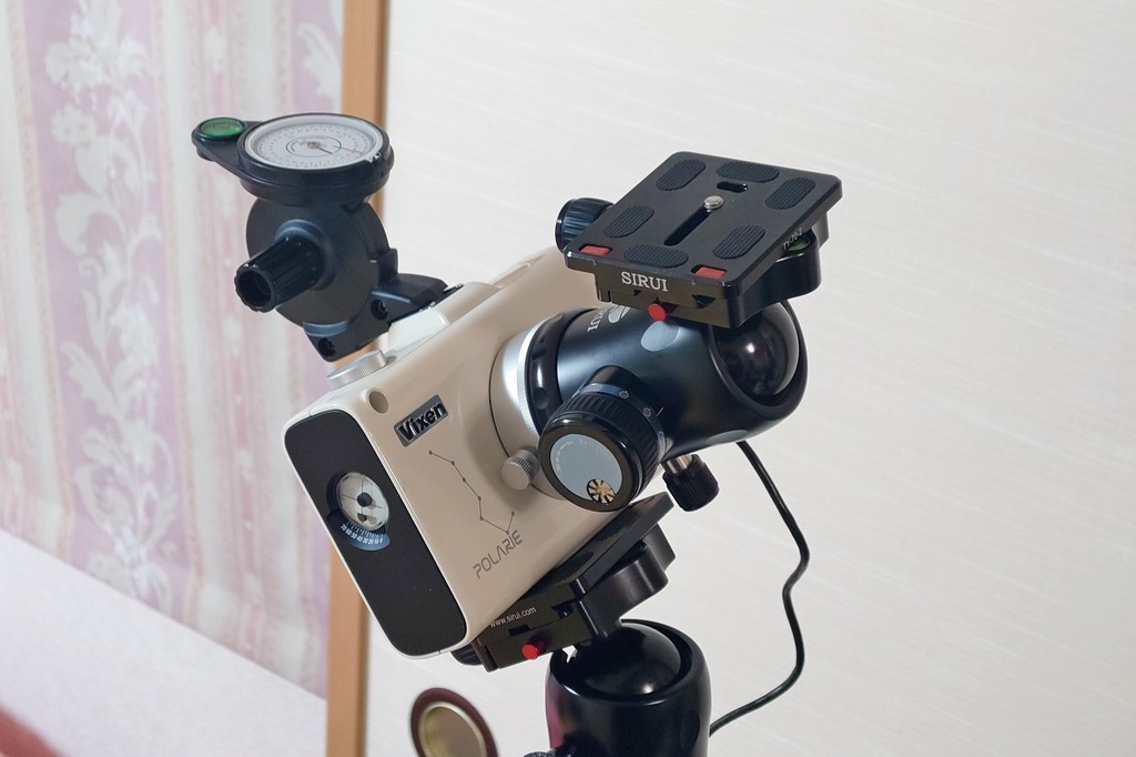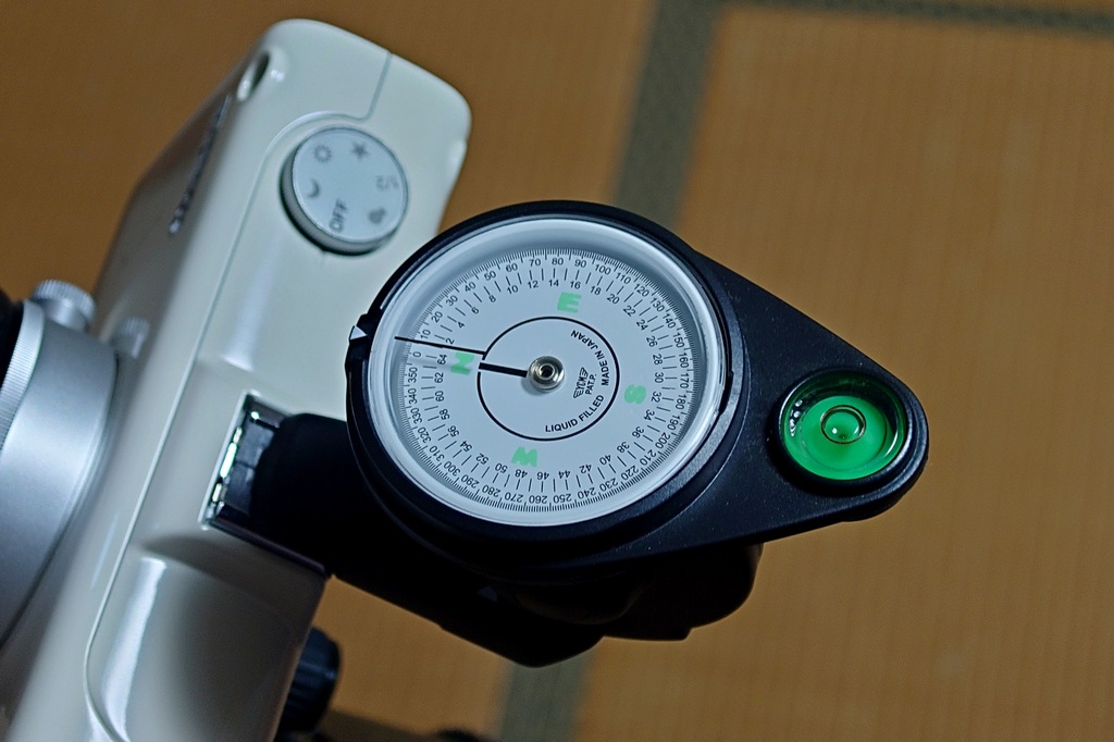 コンパスで、北極星の方向と仰角にセットします。