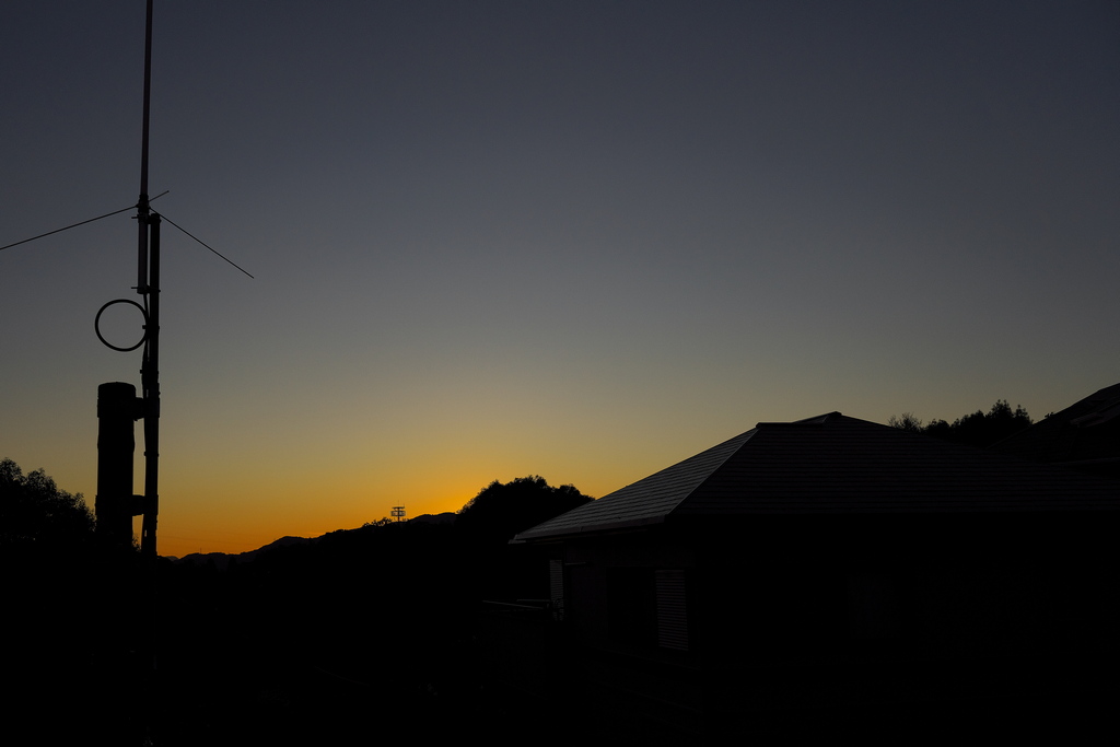 彗星の位置は、左側の屋根の上に見えている、木の上あたりに有るはずです。