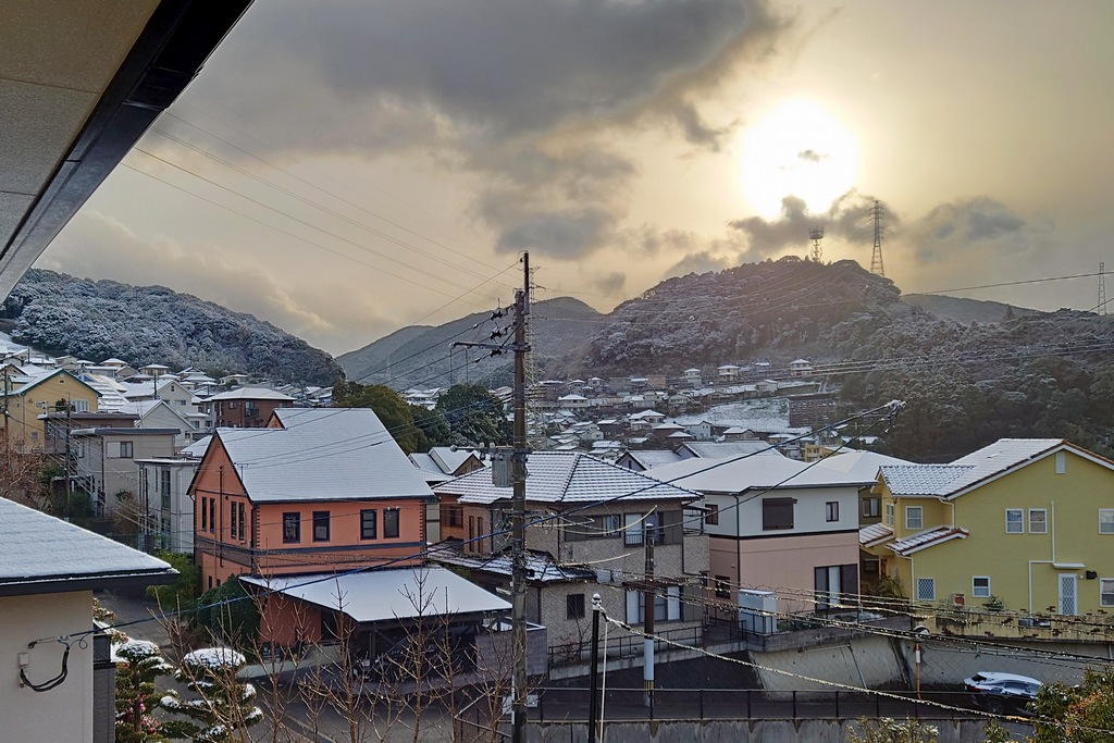 何故か上向き、そう長崎は山が多くで海岸にでも行かない限り、山から日が昇ります。