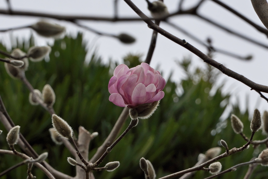 メジロや、ヒヨドリが蜜を求めて集まります。