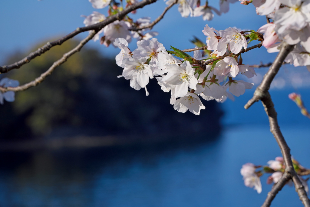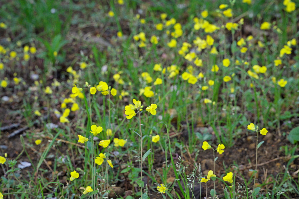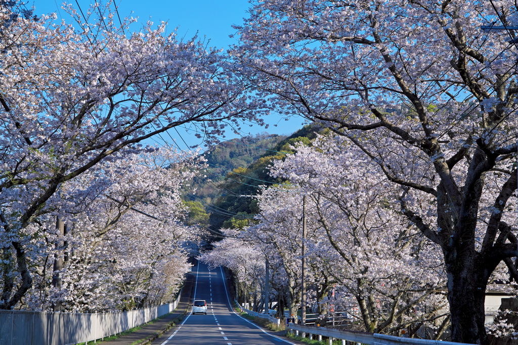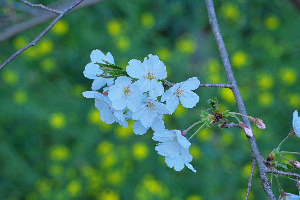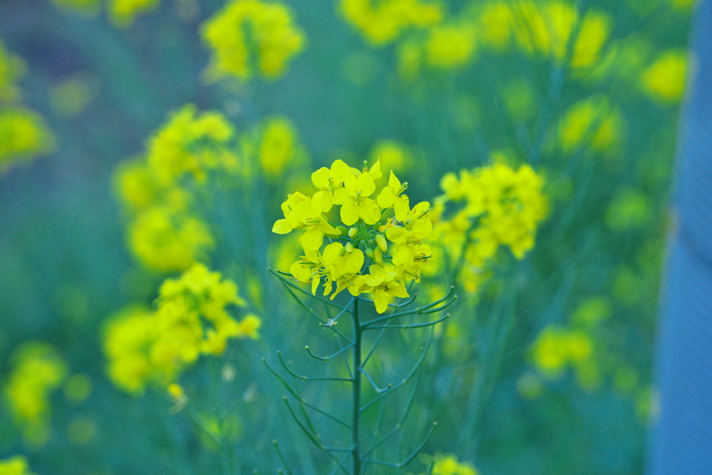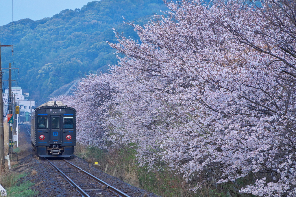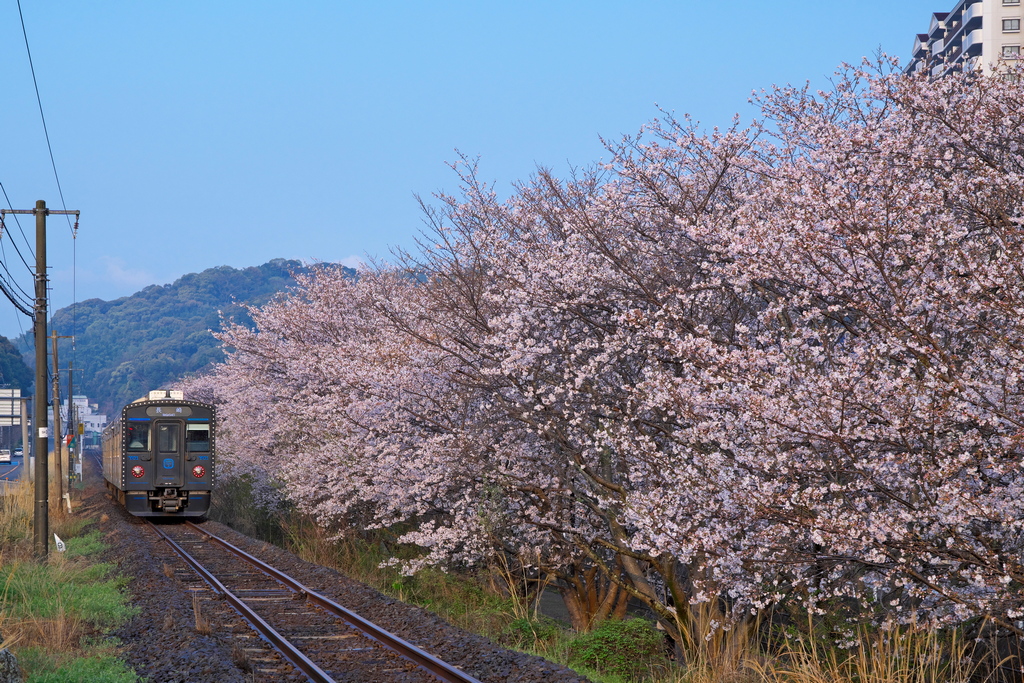 桜のピンク、菜の花の黄色、そして、シーサイドライナーの青!